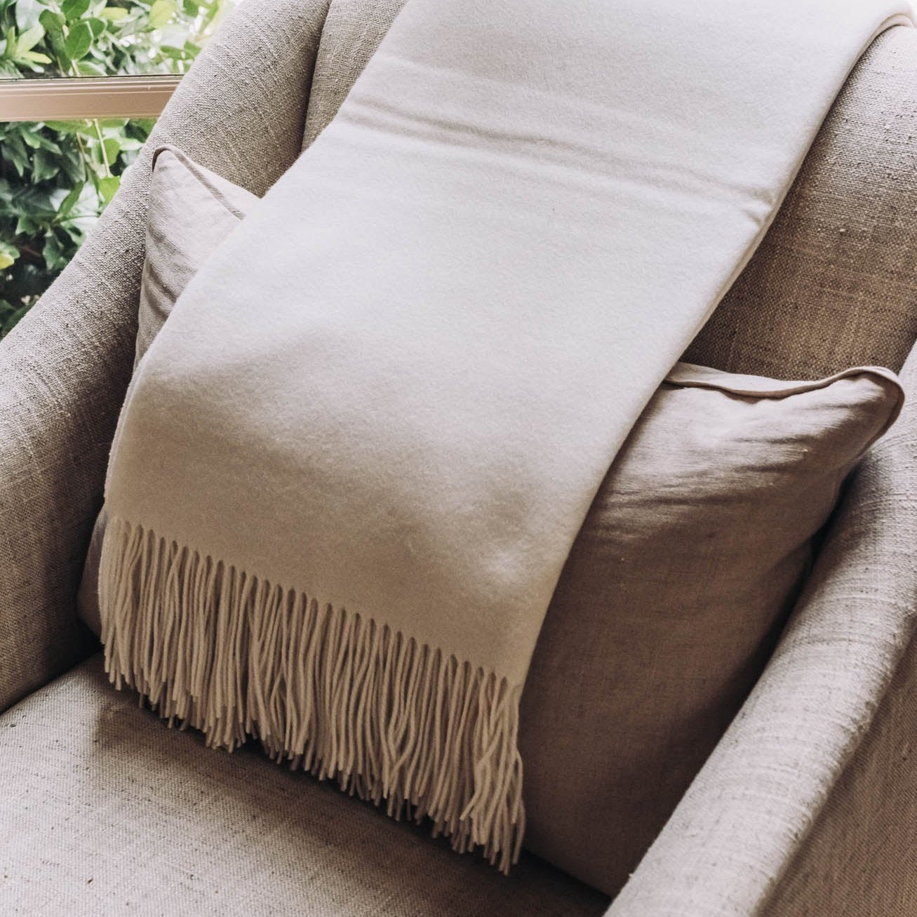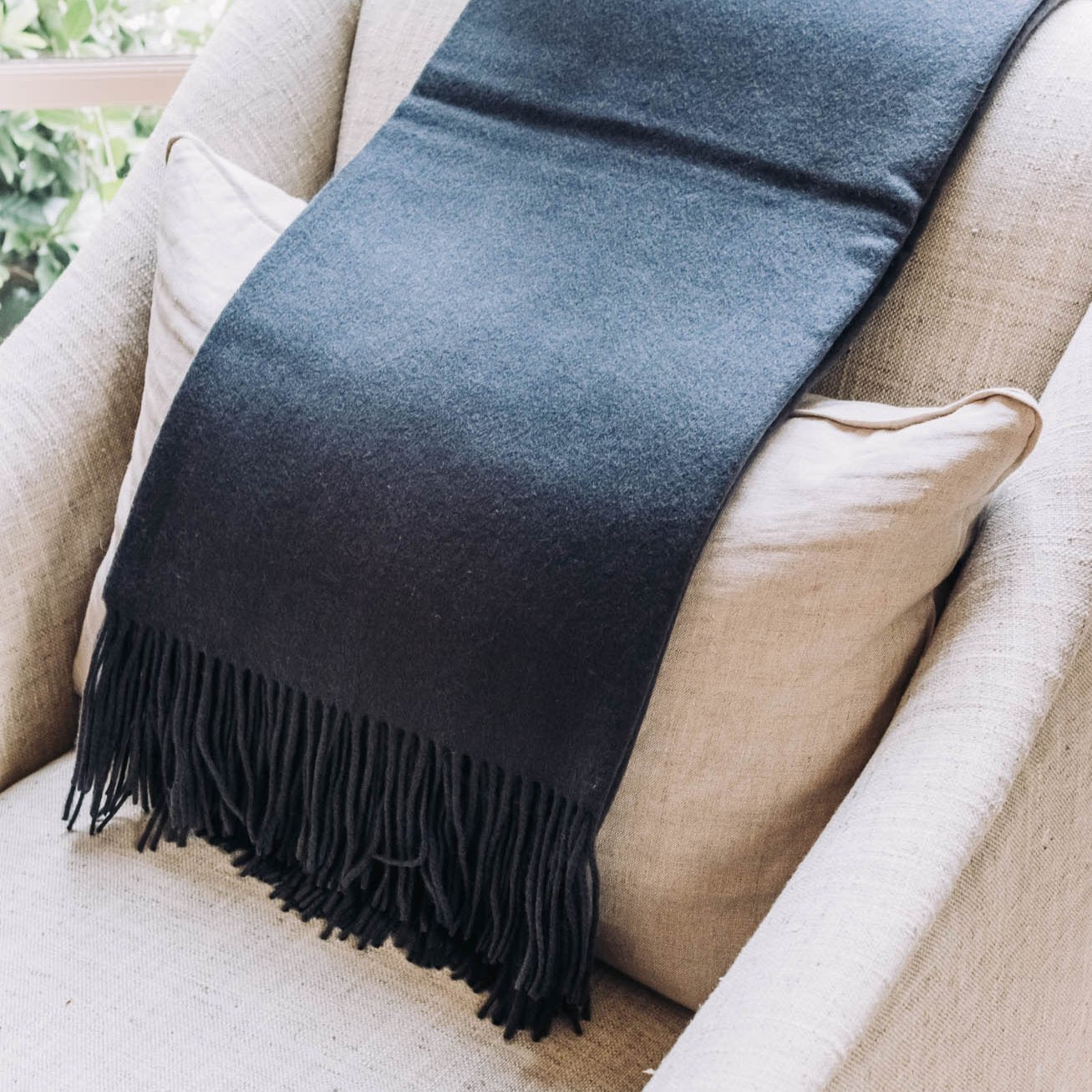 Indulge in the luxury of our Classic Throw, made with a blend of high-quality Merino Wool and Cashmere. Soft, yet durable, this throw is perfect for snuggling up on a chilly evening or adding a touch of elegance to your home decor. 50 x 70 in. including fringe