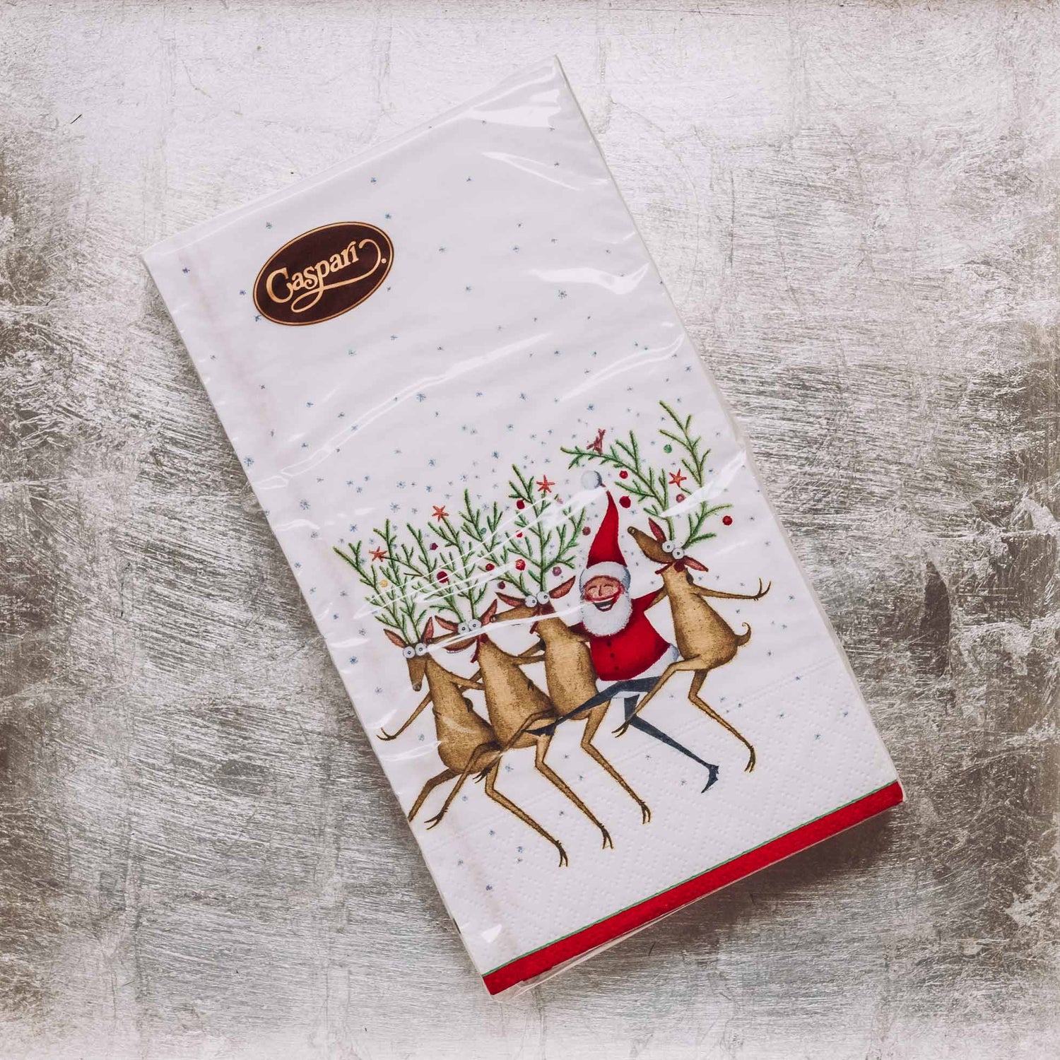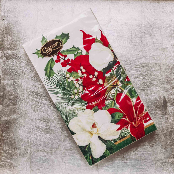 Indulge in luxury with our Holiday Caspari triple-ply Guest Towels. Made in Germany, these napkins feature exquisite artwork and designs from around the world, printed with nontoxic, water-soluble dyes and food-safe ink. Elevate your holiday entertaining with sophistication and taste. Available in sets of 15 napkins in 12 different designs. 4.25 x 7.75 in