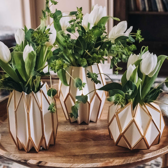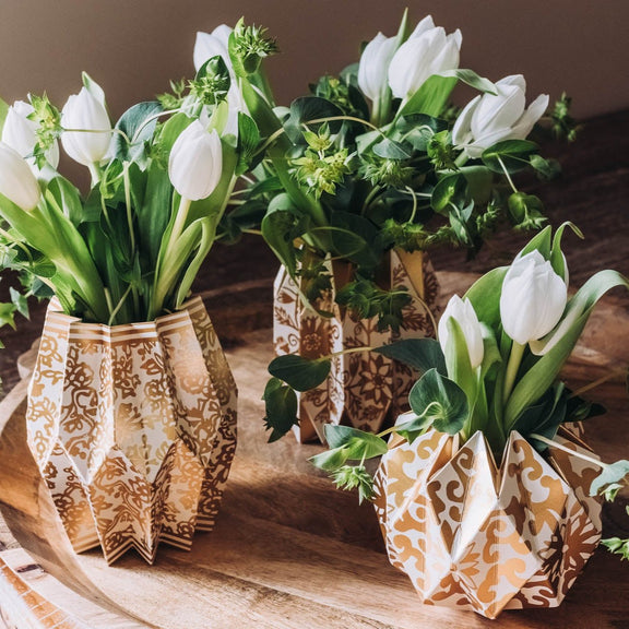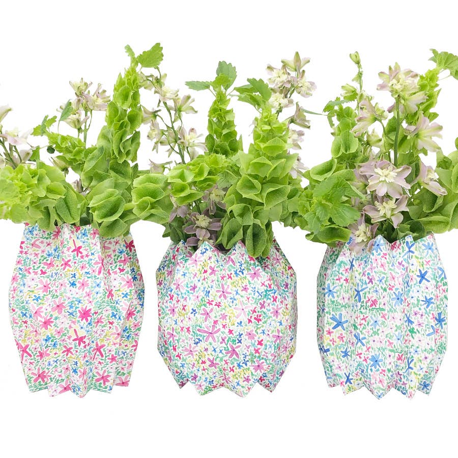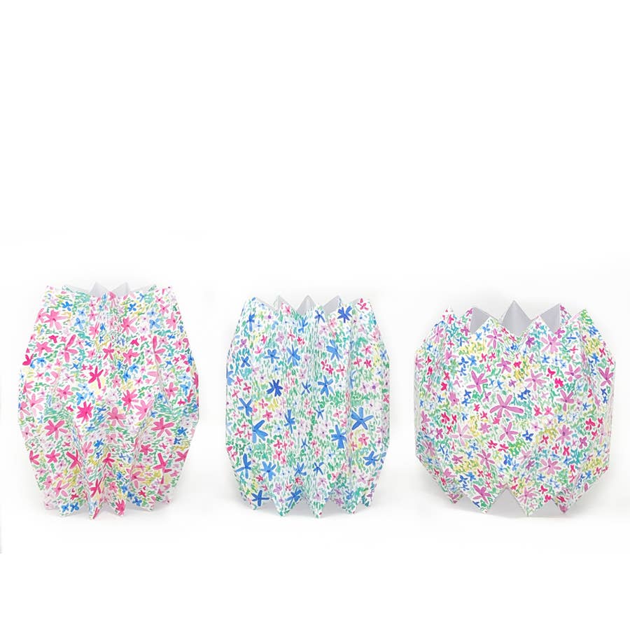 Transform any bouquet into a unique and artistic flower arrangement with our Paper Vase Wraps! Made of high-quality paper, these wraps add a touch of elegance to any vase. Stand out from the crowd and create a one-of-a-kind display that will leave a lasting impression. Add a new level of beauty to your home decor or special occasion with our Paper Vase Wraps! Comes in Sets of 3 in 8 different colors and varieties. Approximate diameter 4".
