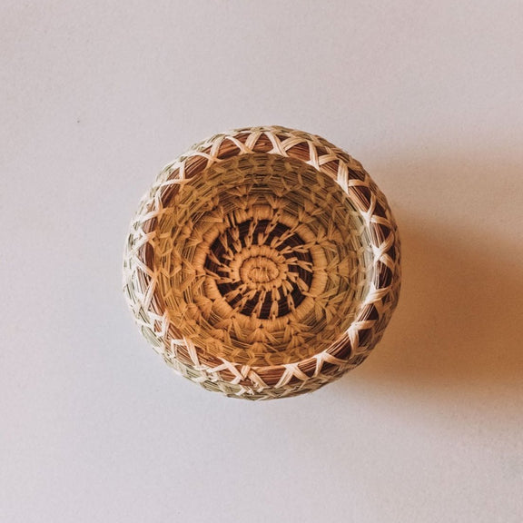 Indulge in the elegance and functionality of the Yesica Basket. Handwoven from native grass in Guatemala, this organizer brings a touch of artistry into your home. Keep your space tidy while supporting traditional craftsmanship and creating a statement piece. 5" wide x 2.4" high